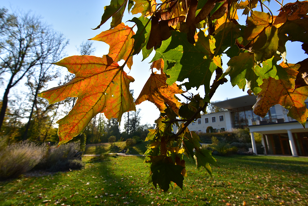 Es ist ein beeindruckendes Naturspektakel, dass wir jetzt bei uns im Schlosspark erleben dürfen, wenn sich alles um uns herum herbstlich bunt verfärbt. Es ist eine einzigartige Stimmung, die besondere Kraft gibt, wenn man entlang der vielen kleinen Wege mit den hohen knorrigen Bäumen spaziert, vorbei an Biotopen, in denen sich das Sonnenlicht spiegelt, hinein in den Wienerwald, der direkt an unser Waldrefugium angrenzt.